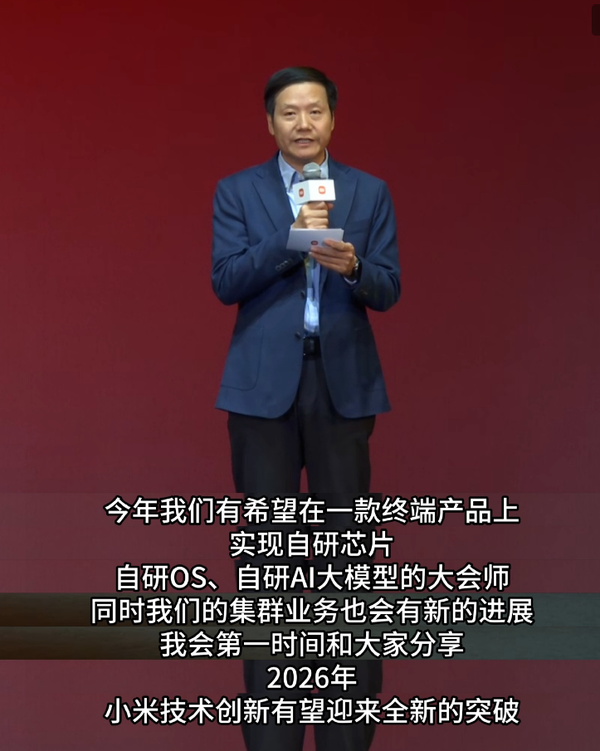 【CNMO科技消息】近日,小米集团董事长兼CEO雷军在小米千万技术大奖颁奖典礼上透露,2026年小米有望在一款终端产品上首次实现自研芯片、自研操作系统与自研AI大模型的“大会师”。尽管未明确具体产品形态,但业界普遍推测该终端极有可能是一款旗舰智能手机。