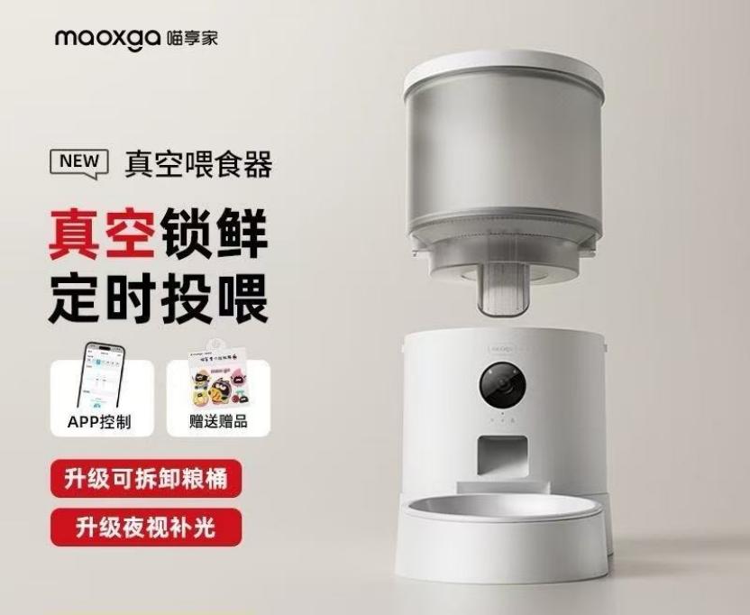 这让蔡烁驰有了自己做一款自动真空喂食器的想法,也是那一年,喵享家品牌成立了。