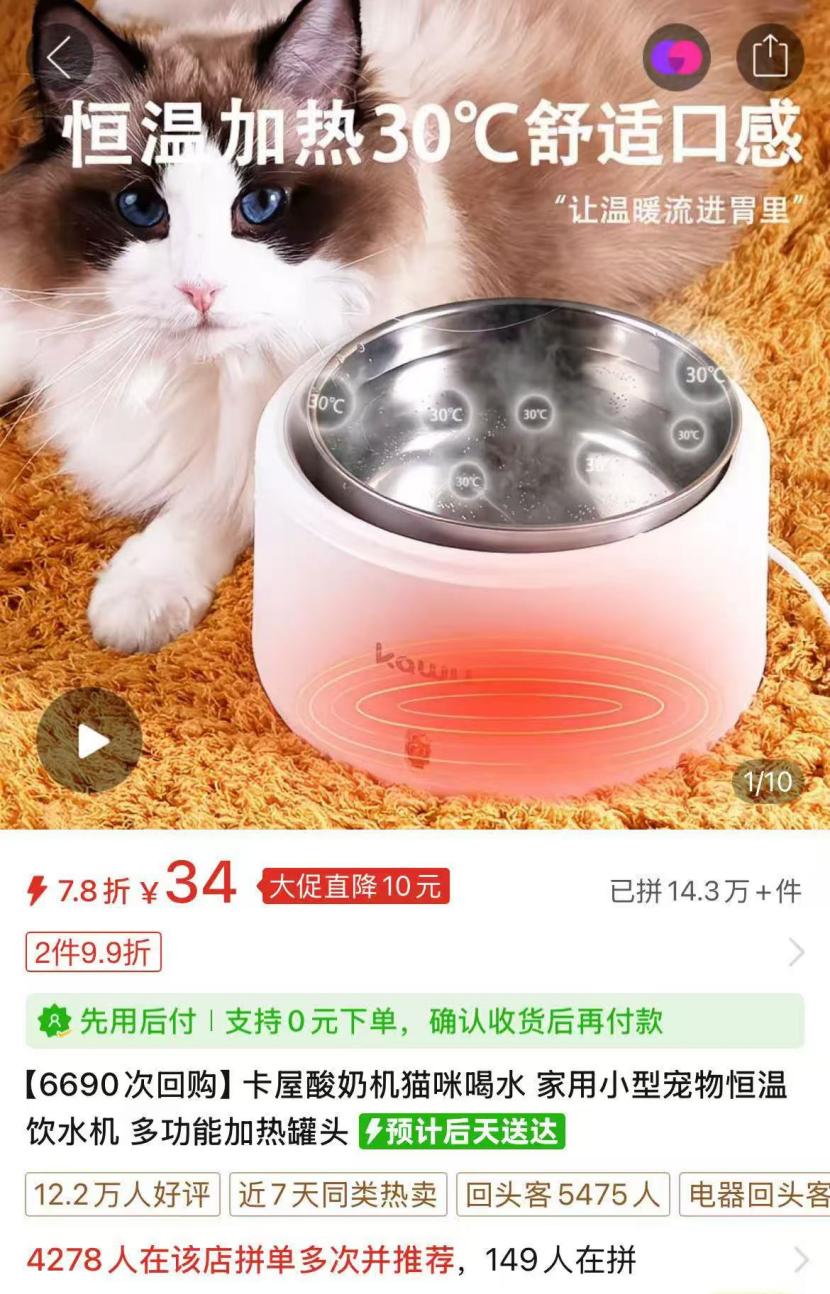 “我们的产品,比如恒温宠物碗的价格并不低,高于拼多多平台的平均水平,但我们的销量依然是领域内最大的。”