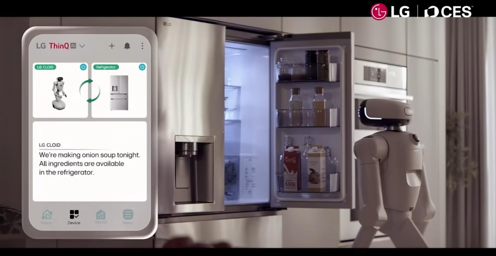 不仅如此,通过和LG ThinQ生态系统无缝连接,CLOiD可以通过应用和用户远程发起交流,并根据对用户生活方式的理解,主动调用LG的家电,从而实现从冰箱取牛奶,把羊角面包放进烤箱准备早餐等一系列操作。