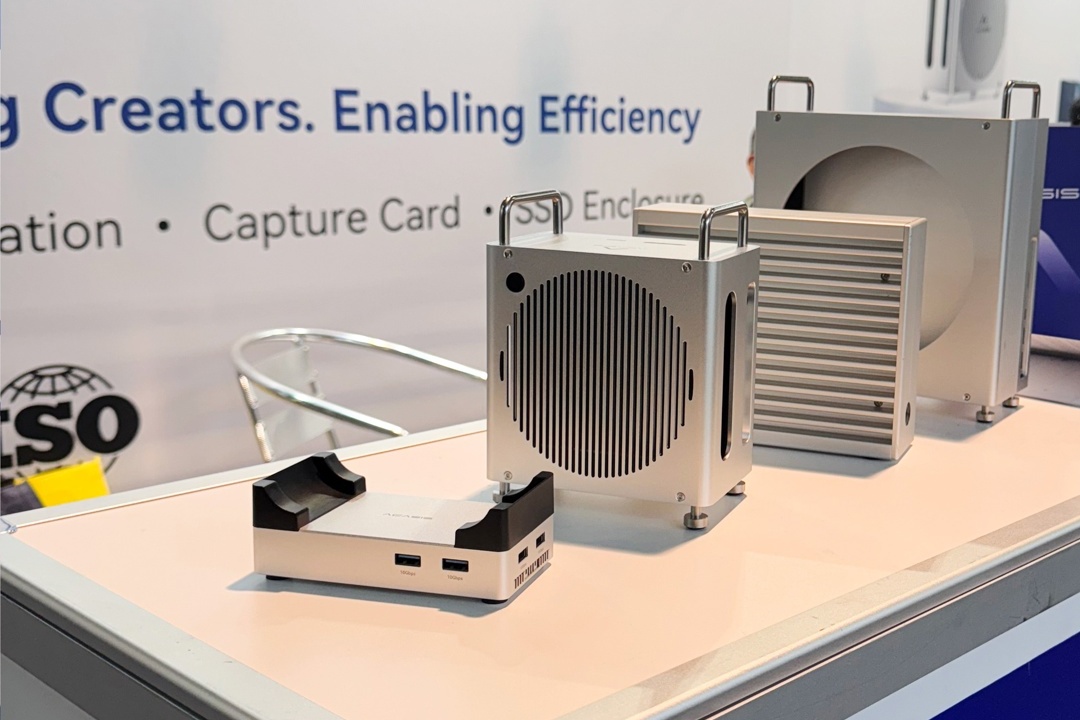 此外,阿卡西斯还展出了适配苹果 Mac mini 迷你主机的系列硬件,包括整合显示、存储、扩展的一体化扩展解决方案。