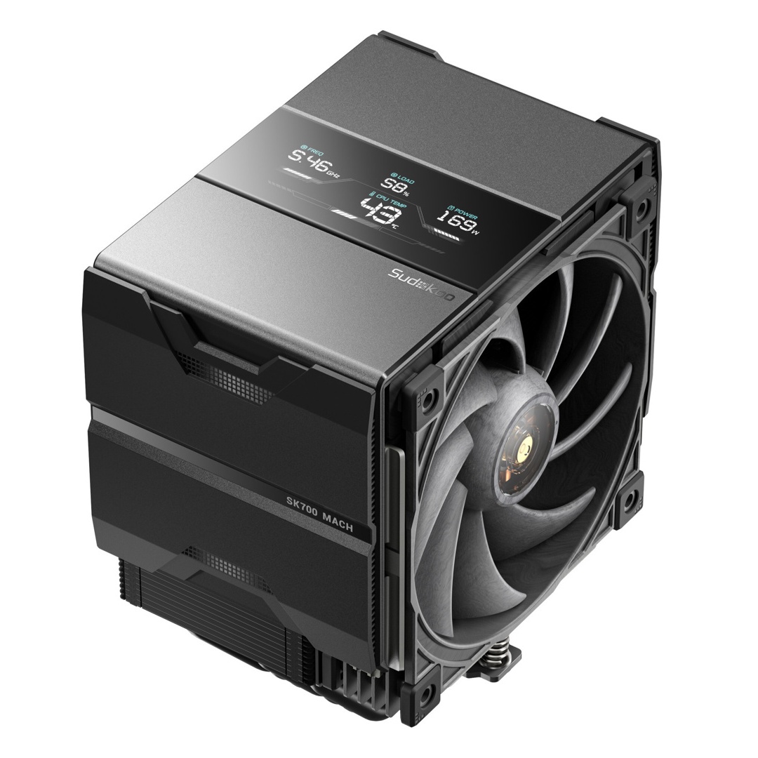现有 7 热管单塔风冷 SK700V 的升级型号,换装 30mm 加厚的高性能风扇 MACH120,采用轨道式风扇安装结构。