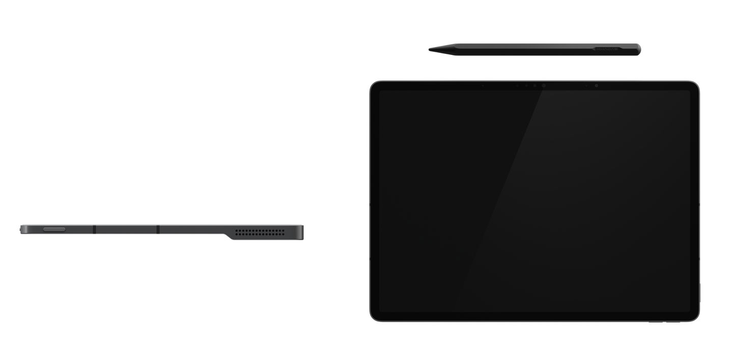 Mind Go 的本体是一款无风扇散热平板电脑,配备扬声器和前摄,支持 Mind Pencil 手写笔。其 11.6 英寸 LCD 原型机重约 600g,厚度约为 6.1mm;而换用 OLED 面板有望将厚度降低至约 5.5mm 并进一步减轻重量。