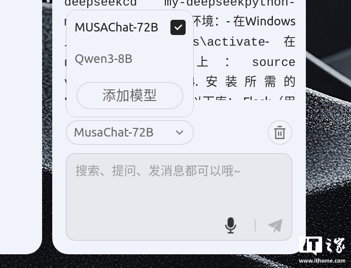 作为强调 AI 赋能的操作系统,AI OS 中自然少不了时下最热门的 AI 助手,系统自带的 AI 助手无需配置,打开即可使用,默认采用 MusaChat-72B 模型。