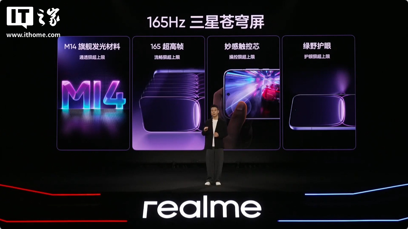 IT之家 1 月 12 日消息,realme 真我 Neo 8 刚刚召开屏幕技术沟通会,宣布新机将全球首发 165Hz 三星苍穹屏,搭载 M14 发光基材,适配《穿越火线-枪战王者》、《三角洲行动》手游、《和平精英》等游戏的原生 165 FPS 模式。