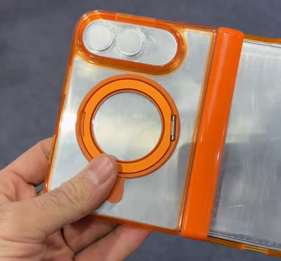 模具背部的细节揭示了影像系统的潜在变化。iPhone Fold 似乎配备了后置双摄像头,但并未沿用近期 iPhone 标准版标志性的对角线排列,而是采用水平排列布局。