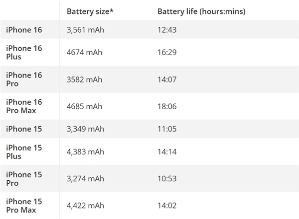 测试人员表示,iPhone 16系列的续航之所以在iPhone 15系列的基础上又有长足进步,主要归功于相对更大的电池以及 A18和A18 Pro芯片功率效率的提升。