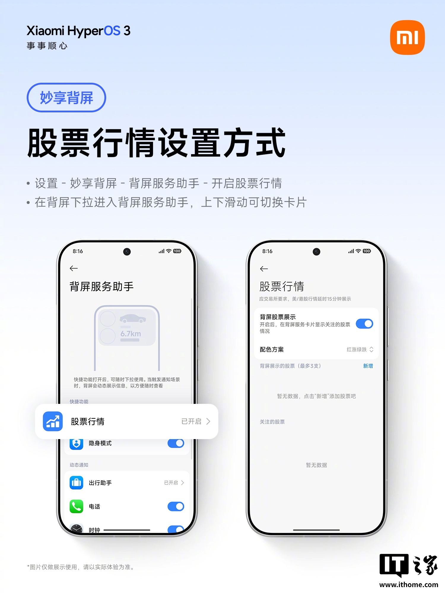 功能入口:进入设置 > 妙享背屏 > 背屏服务助手 > 开启股票行情。