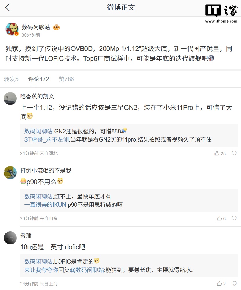 从型号来看,预计 OVB0D 是豪威的新旗舰影像传感器。而从博主暗示和评论区猜测来看,预计荣耀旗舰新机有望搭载该传感器。