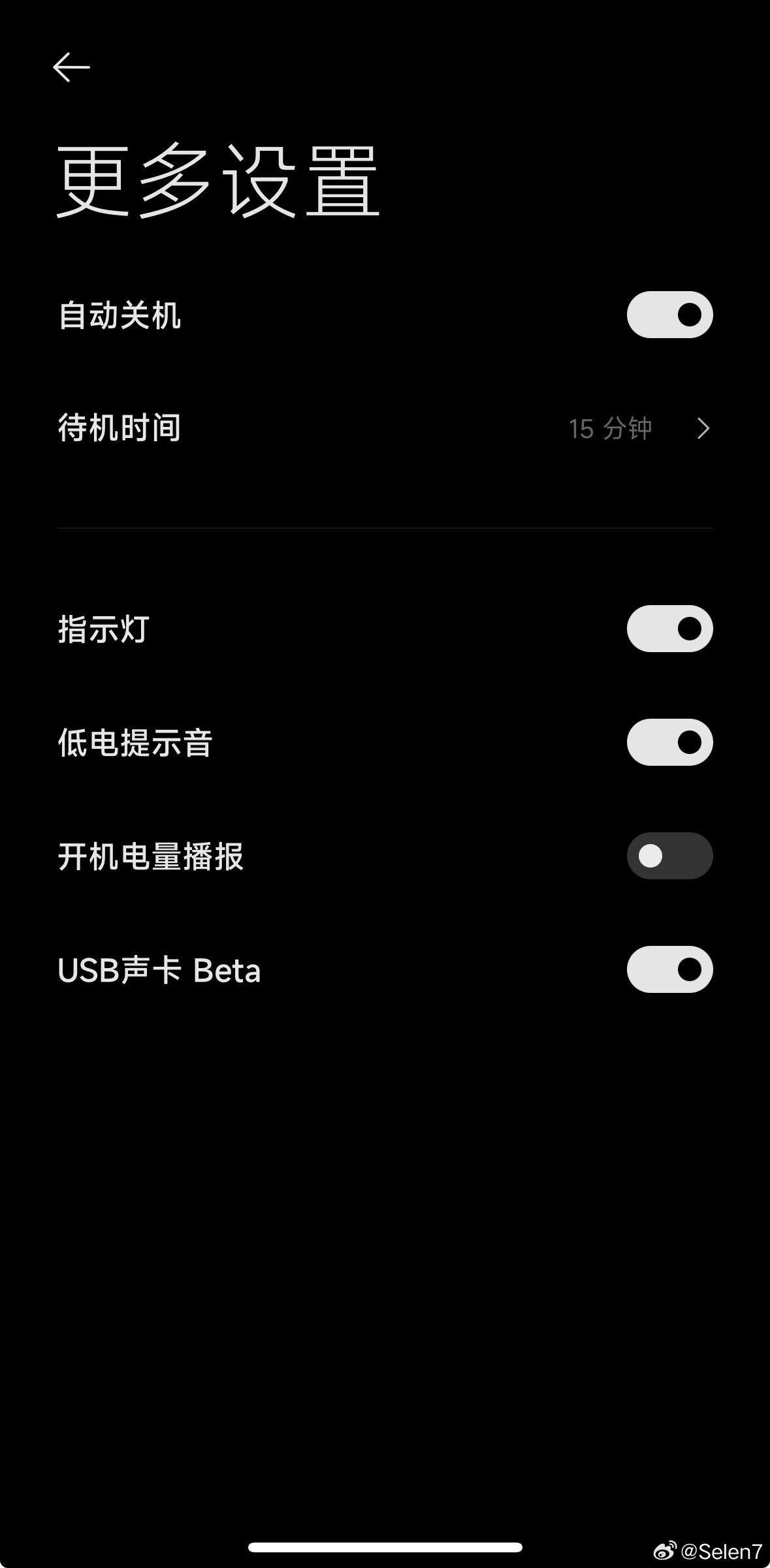 从 @Selen7 发布的功能图片来看,内测设备为“Xiaomi 蓝牙音箱 2”,功能开启后将延长设备充电时间,同时音箱最大音量将有所降低,USB 声卡功能也在设置页面有一个 Beta 开关。