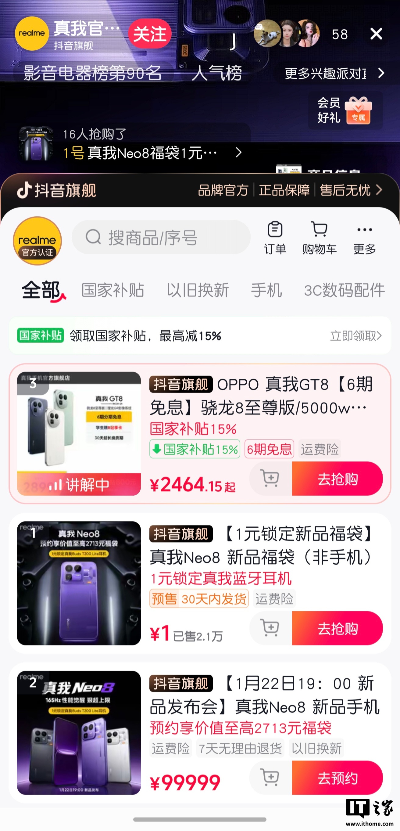 IT之家注意到,自 realme 真我官宣回归后,目前其在京东、淘宝、抖音直播间等平台的在售产品已添加 OPPO 前缀 / 关键词。