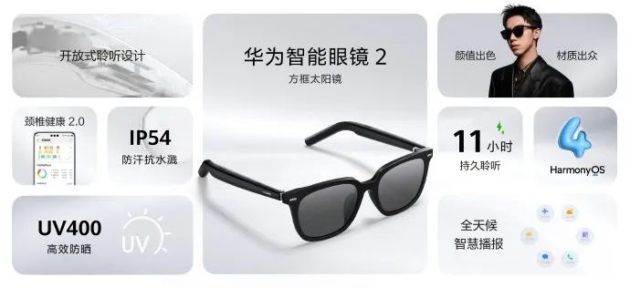在接入AI的基础上,华为智能眼镜2支持智能播报天气、航班、日程、打车等,还能为用户提供颈椎健康情况的报告。