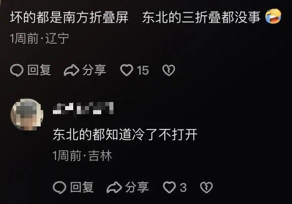他们认为,南方人的折叠屏到东北会坏,纯粹是因为缺乏和寒冷冬季的斗争经验。