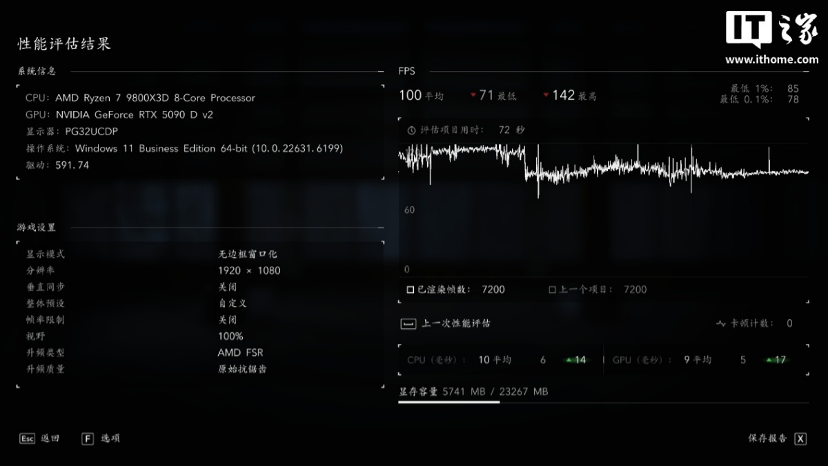 「极限游戏」模式相比「标准」模式,游戏平均帧数提升了 20%,1% Low 提升了 17.7%。
