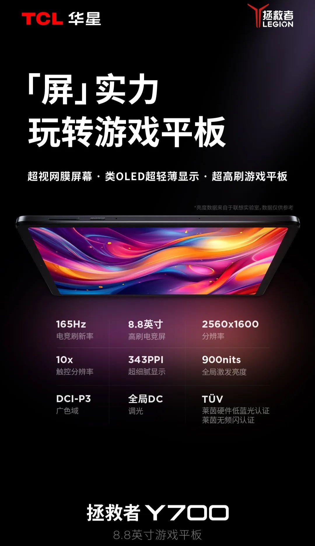 TCL 华星今日发文“认领”联想拯救者新一代 Y700 平板的屏幕。据介绍,该屏幕为 8.8 英寸 LTPS 屏幕,采用类 OLED 超轻薄显示技术。