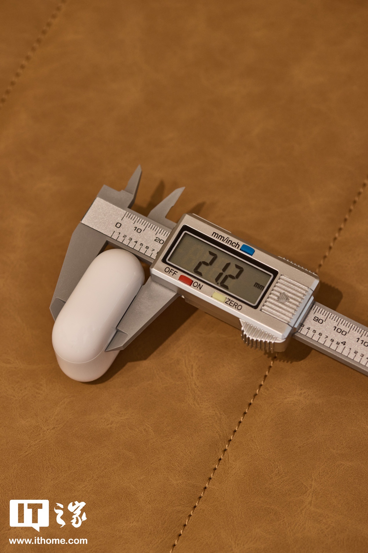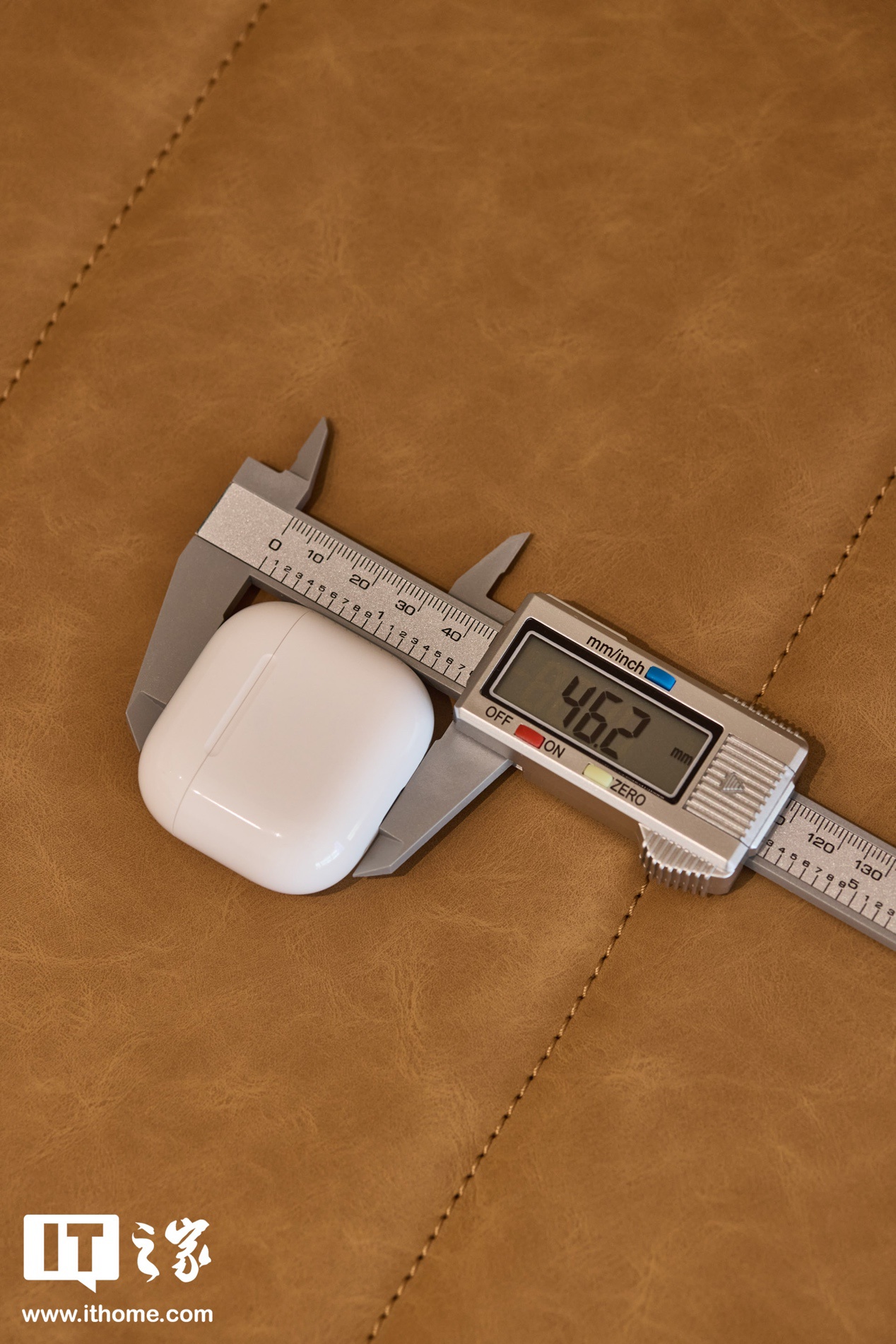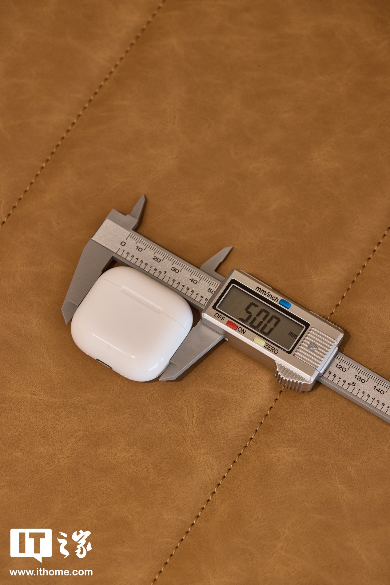 IT之家实测充电盒长宽高为 50.0 x 46.2 x 21.2mm。