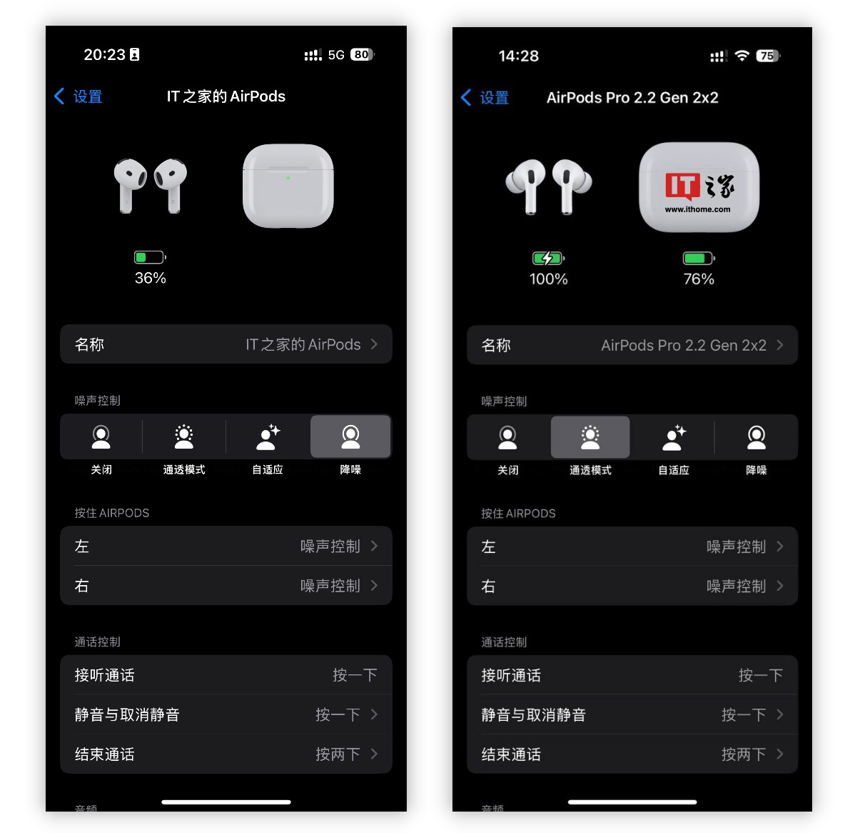 功能特性方面,AirPods 4 降噪款说是 AirPods Pro 2 的半入耳版本也不为过,功能特性上的一致性非常高。