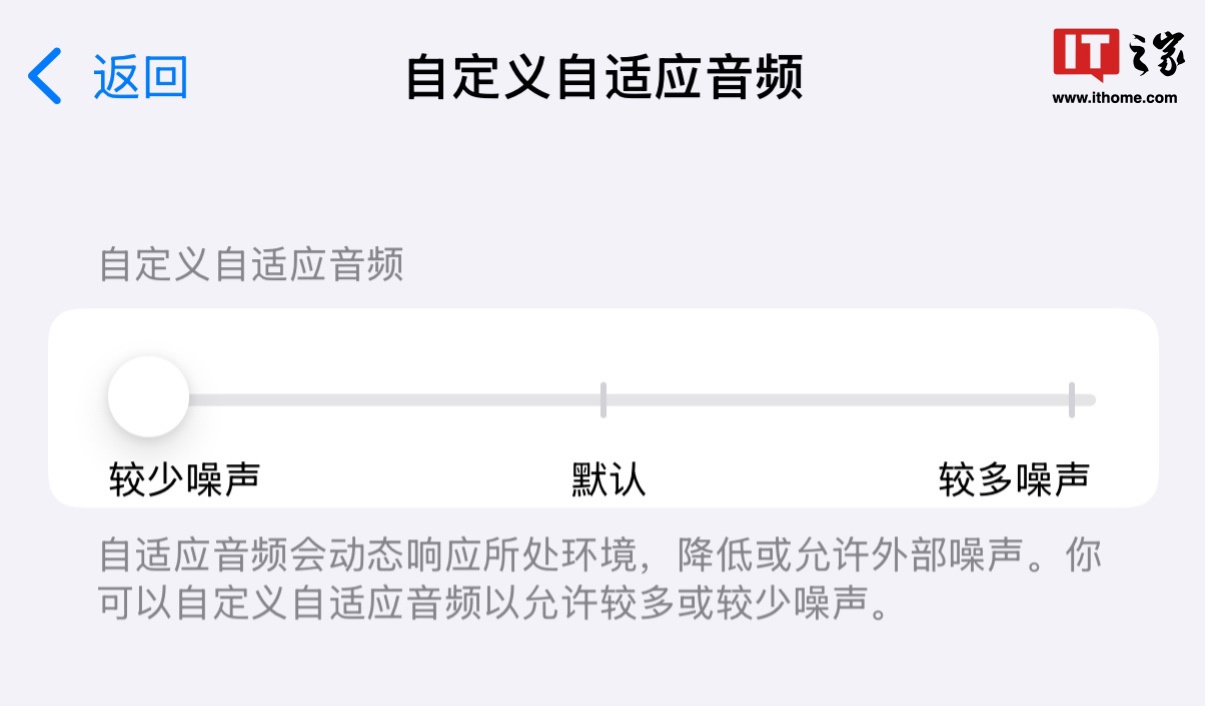 除了“降噪”模式之外,其他模式的体验也与 AirPods Pro 2 类似。AirPods 4 也支持 AirPods Pro 2 最新固件新增的自定义自适应音频功能。