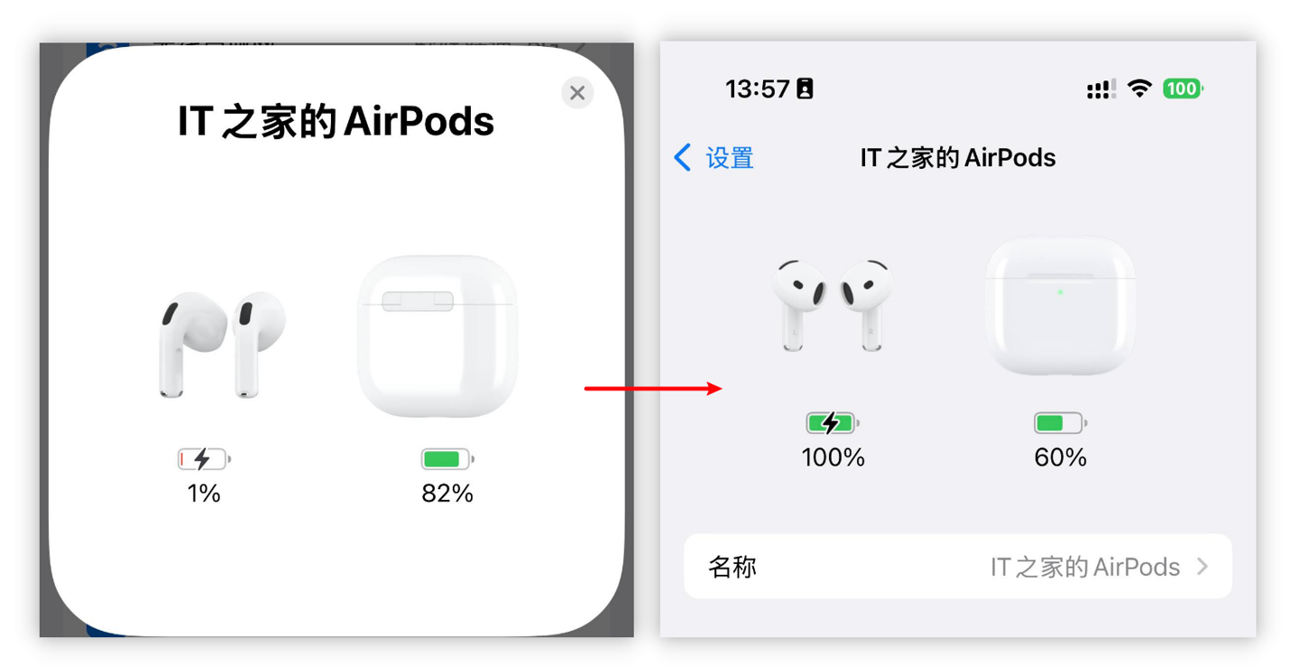 而耳机盒将两只耳机的电量重新充满,电量由 82% 下降至了 60%,折合耳机盒可为耳机充电约 4-5 次,也略好于官方 20 小时总续航的标注。