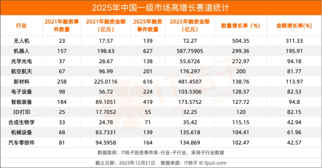 无人机504%的事件数增长、机器人587亿元的融资总额、新材料481亿元的资本涌入,这些数字背后,是中国制造业向全球价值链上游攀升的决心,是科技自立自强的战略选择,是新质生产力的现实写照。