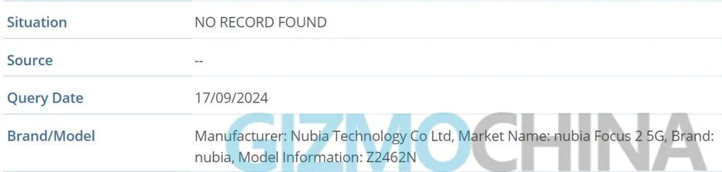 根据 IMEI 数据库显示的信息,努比亚 Focus 4G 的型号为 Z2455、而努比亚 Focus 2 5G 的型号为 Z2462N,目前尚不清楚新智能手机的具体规格。IT之家附上相关截图如下: