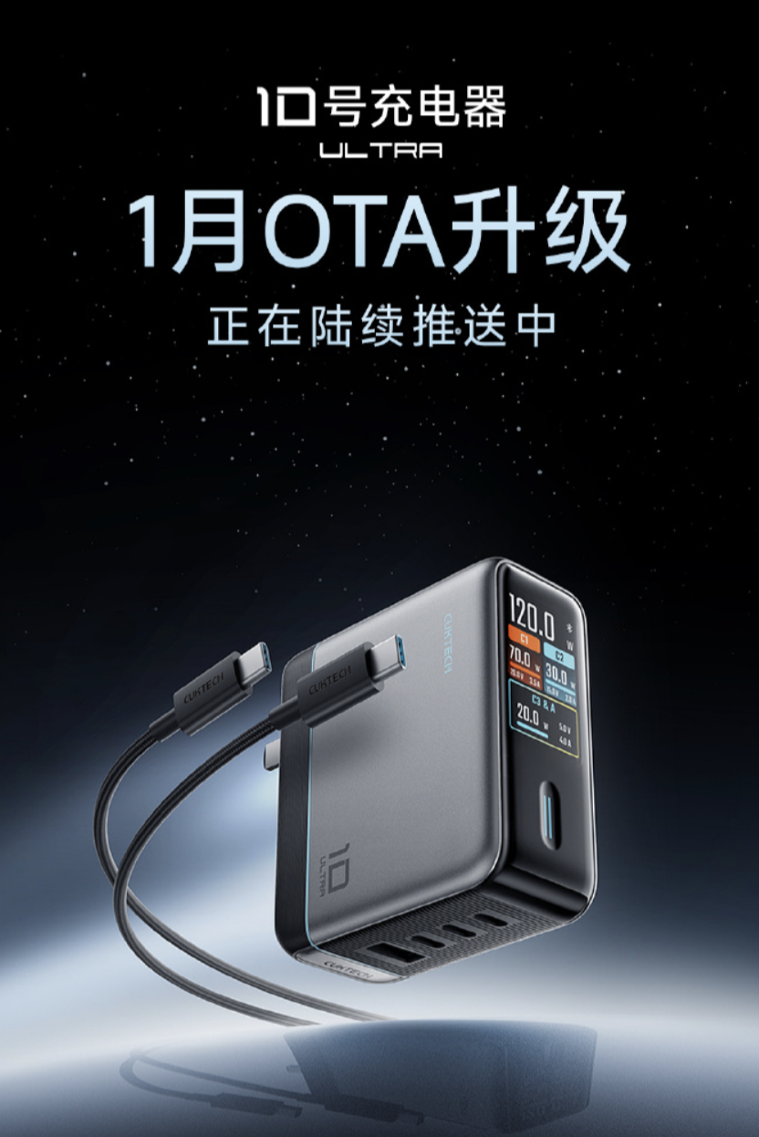 IT之家 1 月 21 日消息,酷态科宣布旗下 10 号充电器迎来 1 月 OTA 升级,主要新增 ADC 协议助手、AI 智能模式、设备端二级菜单等。