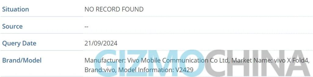 根据 IMEI 数据库信息,vivo X Fold4 智能手机的型号为 V2429,数据库中并未分享其它更多信息。