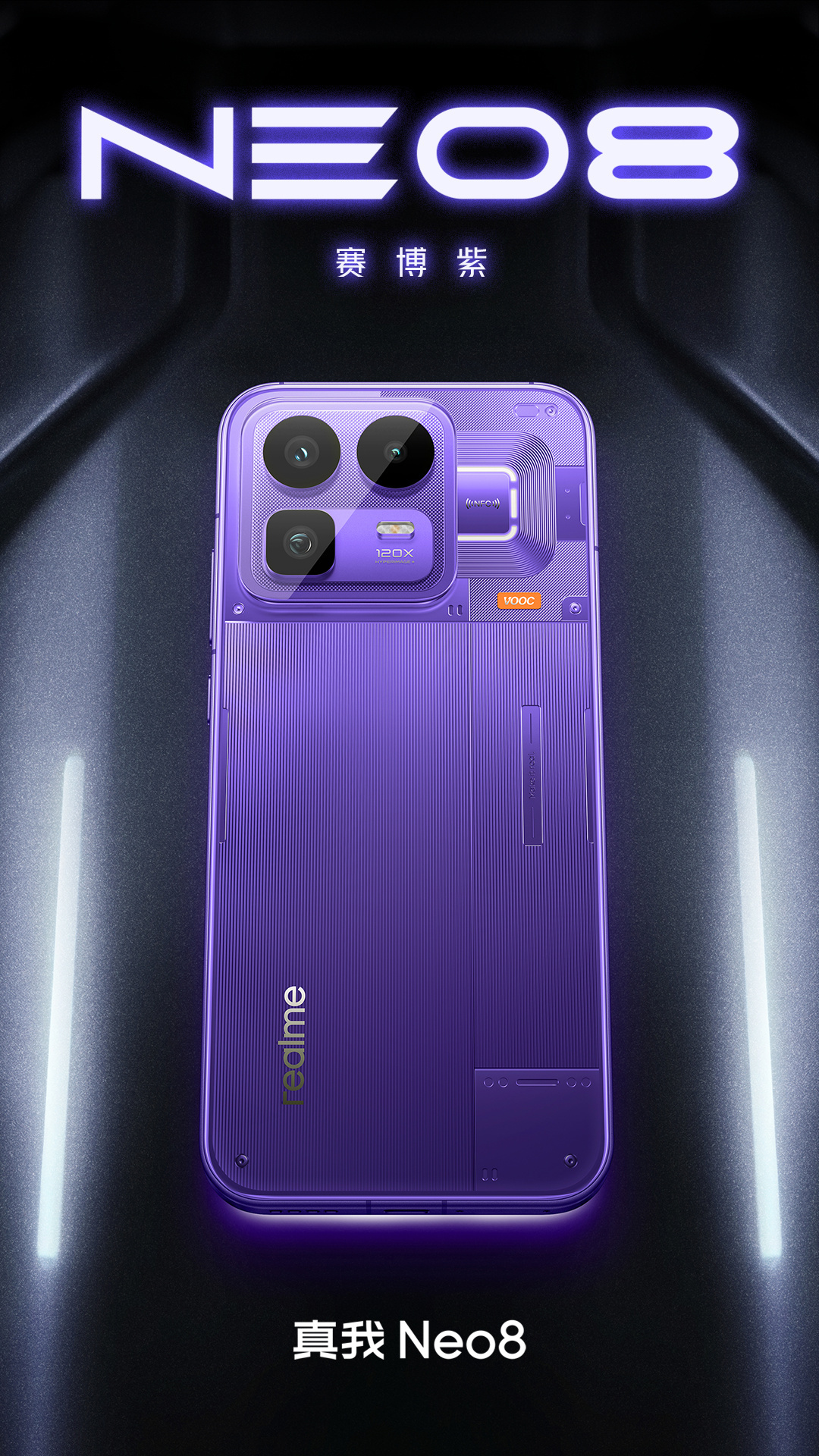 外观方面,新机提供赛博紫、机甲灰、起源白三款配色,采用全新的透明 RGB 设计。除了常规版本外,真我 Neo8 三星堆限定礼盒也会在今晚亮相,该礼盒采用特殊的包装设计,以三星堆青铜器的绿色纹理为底,其上标有金色的“奇遇古蜀”字样。