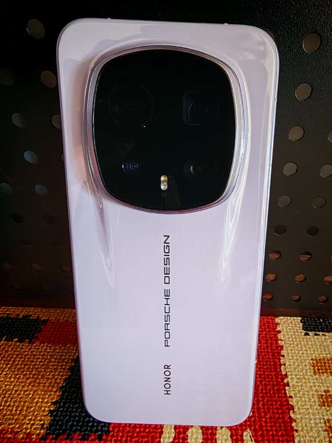 荣耀Magic8 RSR的镜头模组则借鉴保时捷911经典矩阵大灯造型,三颗摄像头以圆角矩阵排列,闪光灯与品牌Logo居中对称,身份标签的辨识度拉满。