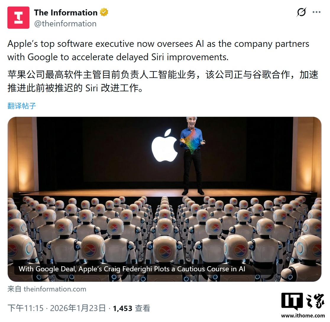 IT之家 1 月 24 日消息,科技媒体 The Information 昨日(1 月 23 日)发布博文,报道称苹果工程师曾提议利用 AI 全面接管 iPhone 主屏幕,实现 App 图标根据用户习惯、时间和地点动态重排。