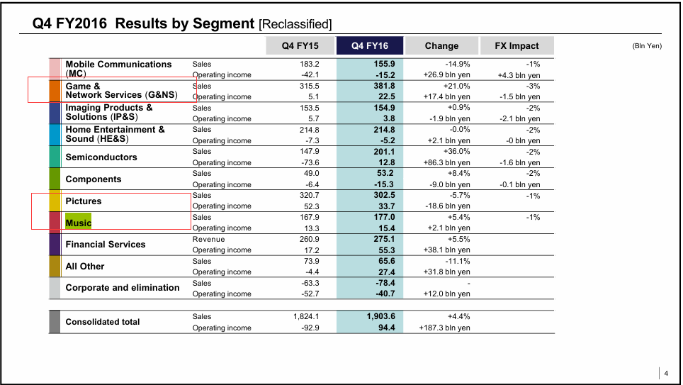 近年,游戏业务更成为了索尼最赚钱的业务,2024年,其游戏业务实现收入4.67万亿日元(约2100亿元人民币);音乐业务则成为增长最强劲的业务,同期同比增长14%至18426亿日元(约810亿元人民币);而影视业务方面,索尼影业则是全球五大影视公司之一。