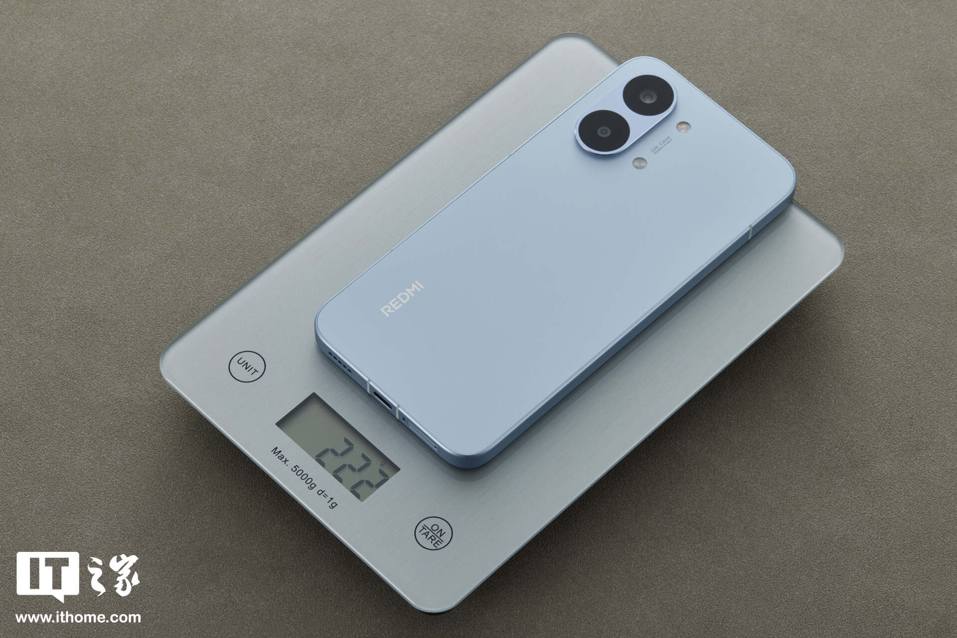 实测 REDMI Turbo 5 Max 重量为 222g,贴膜厚度为 8.1mm,都在能接受的范围内。