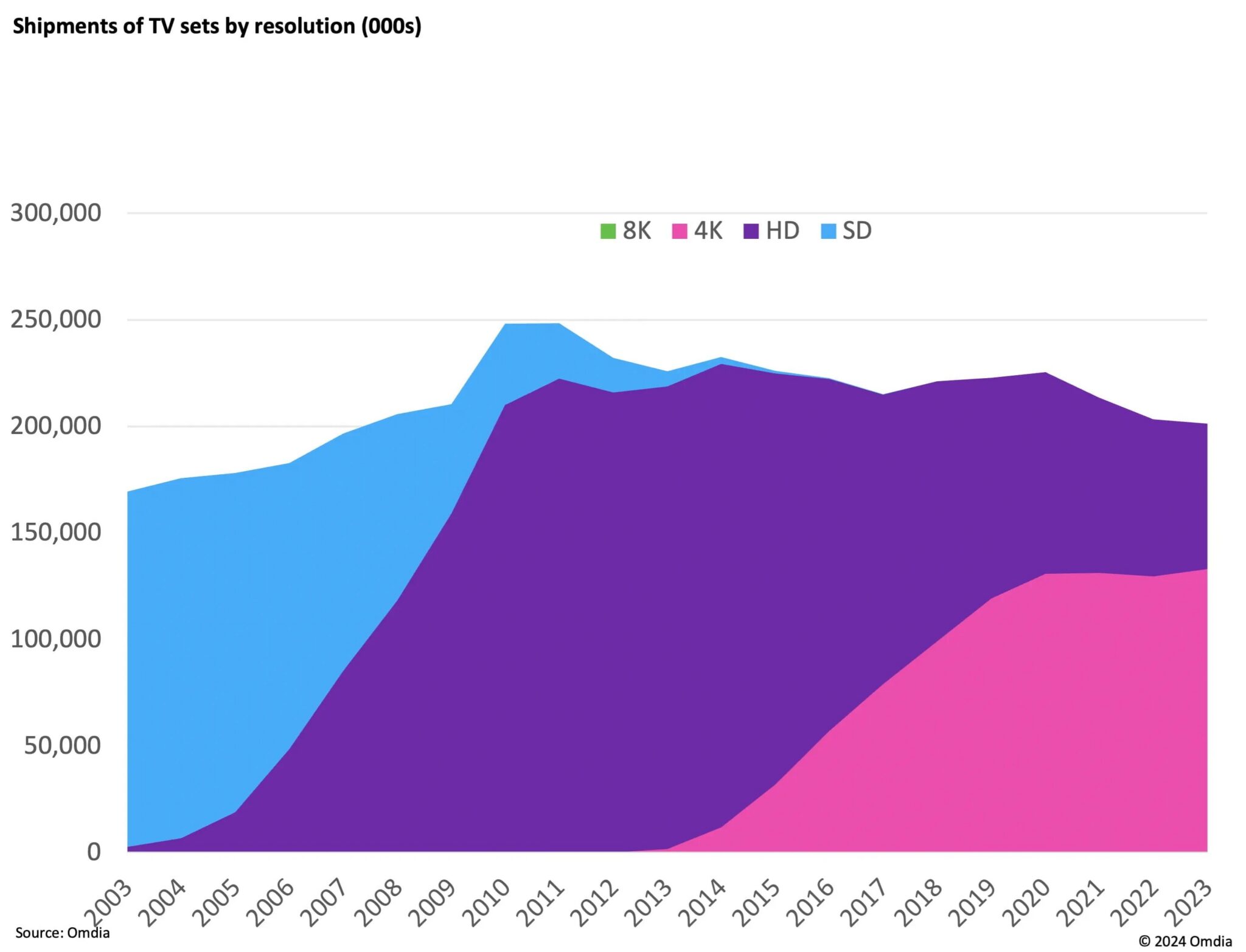 索尼的动作则更为彻底,该公司于 2025 年 4 月停产了最后一款 8K 电视,且随着其计划将 Bravia 电视业务的多数股权出售给 TCL,索尼重返 8K 市场的可能性微乎其微。