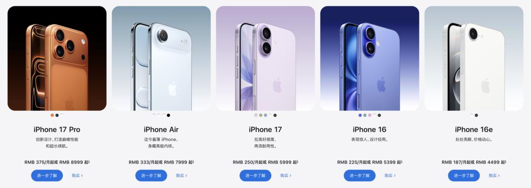 这里指的不是 iPhone 17 Pro 和 iPhone 17 Pro Max 之间的并行,而是「实用主义的 Pro 系列」+「水桶化的数字系列」+「设计导向的 Air 系列」之间的并行。