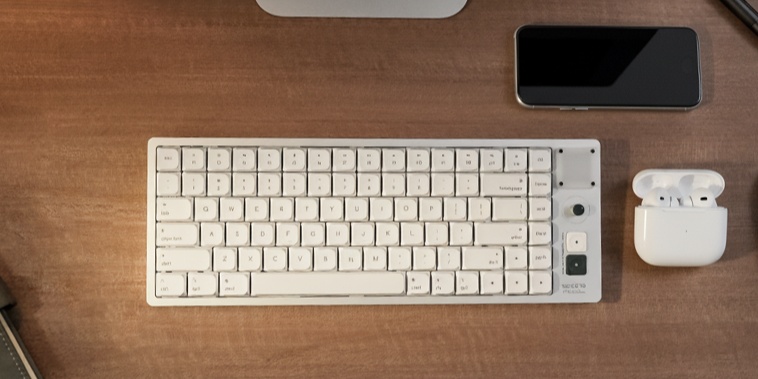 这款键盘支持 USB-C 有线、2.4GHz 无线、蓝牙无线三种连接方式,回报率可达 1000Hz,内置的 5000mAh 电池可提供至高 2500 小时续航。