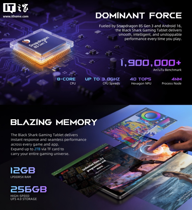 IT之家 2 月 5 日消息,黑鲨今日在海外发布了一款电竞小平板,名为 Black Shark Gaming Tablet。