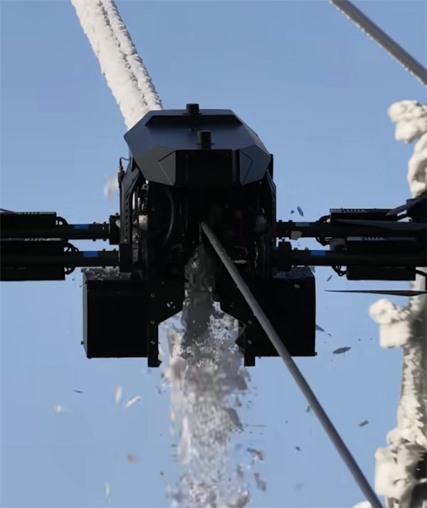 并具备自适应跨档技术,解决山区线路档距跨度大的痛点,清理完一个档距后,自行飞往下一档距的线路,彻底摆脱传统除冰设备对人工干预的依赖。