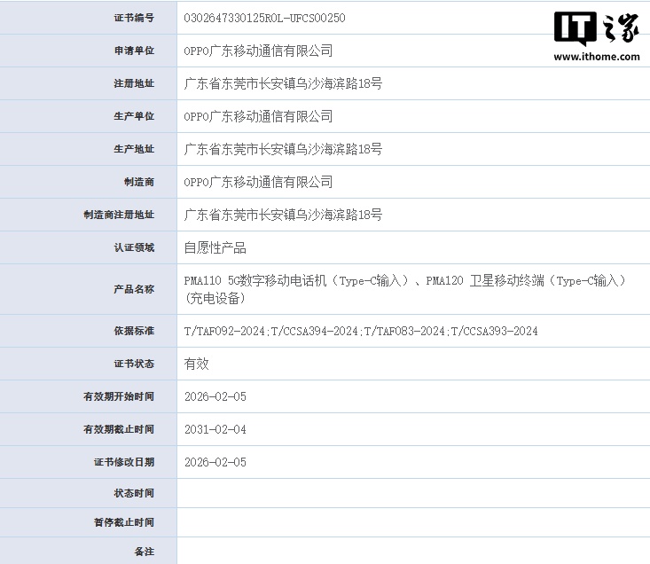 IT之家 2 月 6 日消息,OPPO 有多款新机通过 UFCS 融合快充认证,充电功率未公布: