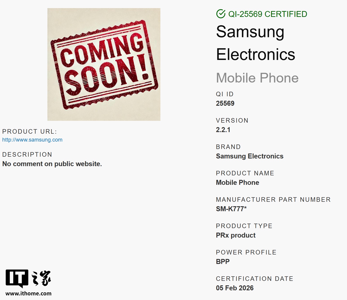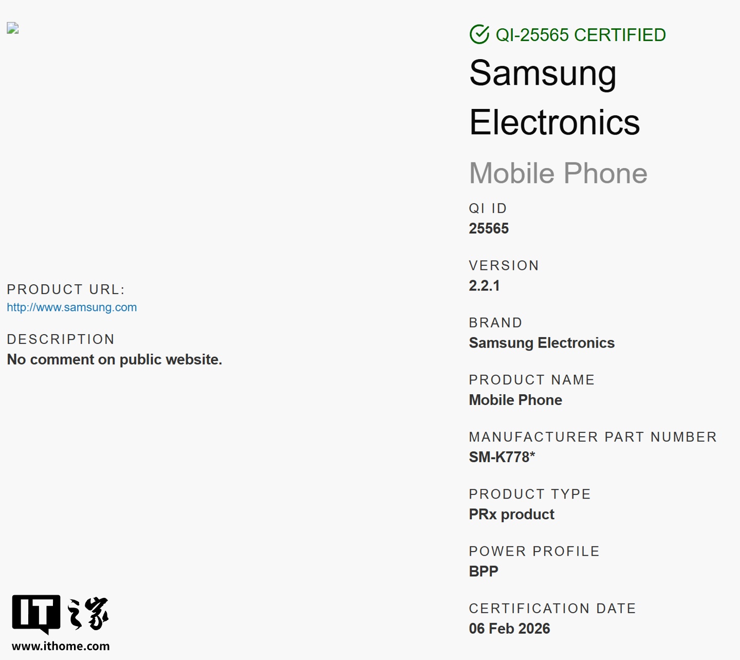 IT之家 2 月 7 日消息,型号为 SM-K772、SM-K777 和 SM-K778 的三款三星新机最近现身 WPC(无线充电联盟)数据库,科技媒体 9To5Google 认为这几款新机分别是 Galaxy S26 标准版、S26+ 以及 S26 Ultra。