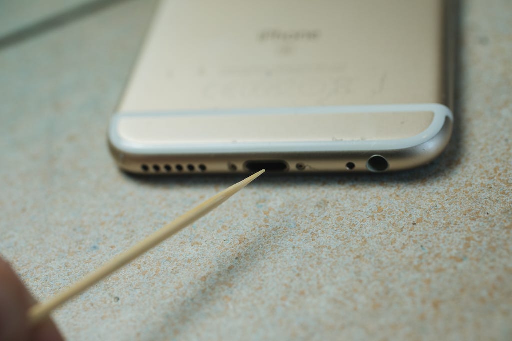 清理手机充电口其实很简单。你只需准备一根牙签、掏耳棒或其他细长且可插入充电口的物品,用于刮出污垢。木头或塑料材质更佳,因为它们不太可能刮伤内部零件,造成不必要的损害。虽然我也曾使用过金属SIM卡取卡针或耳环后面的针来完成这项工作,但它们并不总是手机最安全的选择。