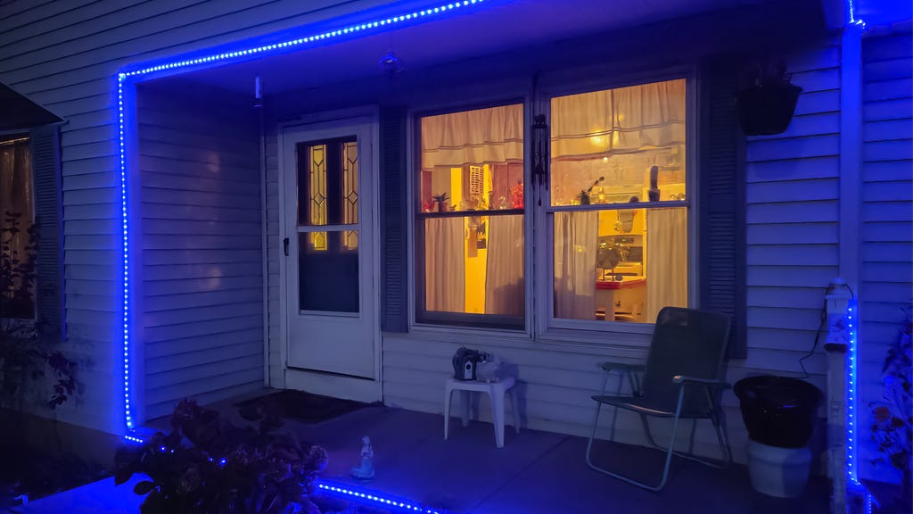 然而,一旦安装完毕,我就被灯带的亮度深深折服。尽管在照片中不太明显,但它们即使在白天也足够明亮,夜晚更是璀璨夺目。当然,亮度部分取决于你选择的颜色,冷色调确实异常明亮。如果你追求更多光线,还可以安装铝制灯槽或扩散器来进一步提升亮度,但就我的需求而言,开箱即用的亮度已经足够,且是一个令人惊喜的发现。