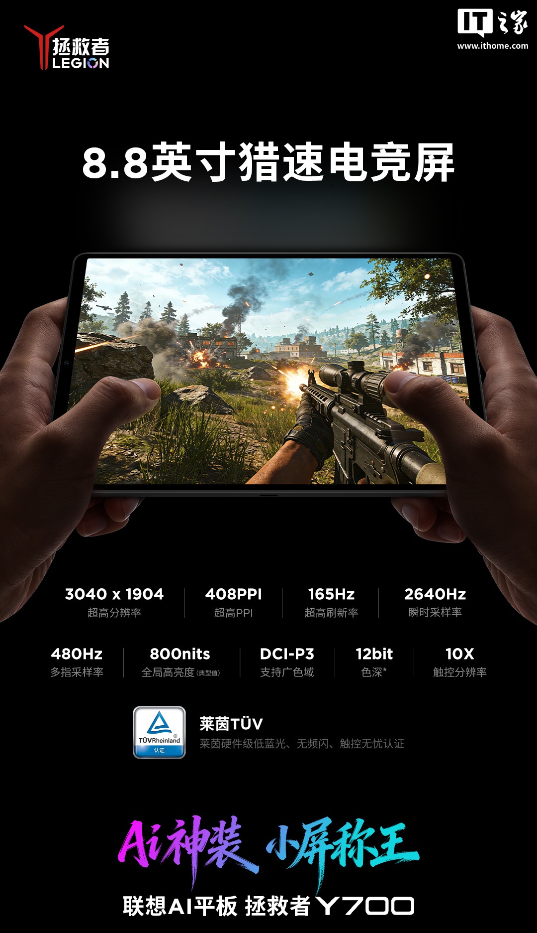 IT之家 2 月 9 日消息,联想拯救者官方今日公布了联想 AI 平板拯救者 Y700 的屏幕参数。据介绍,新机将延续 8.8 英寸黄金尺寸设计,并配备一块“猎速电竞屏”。