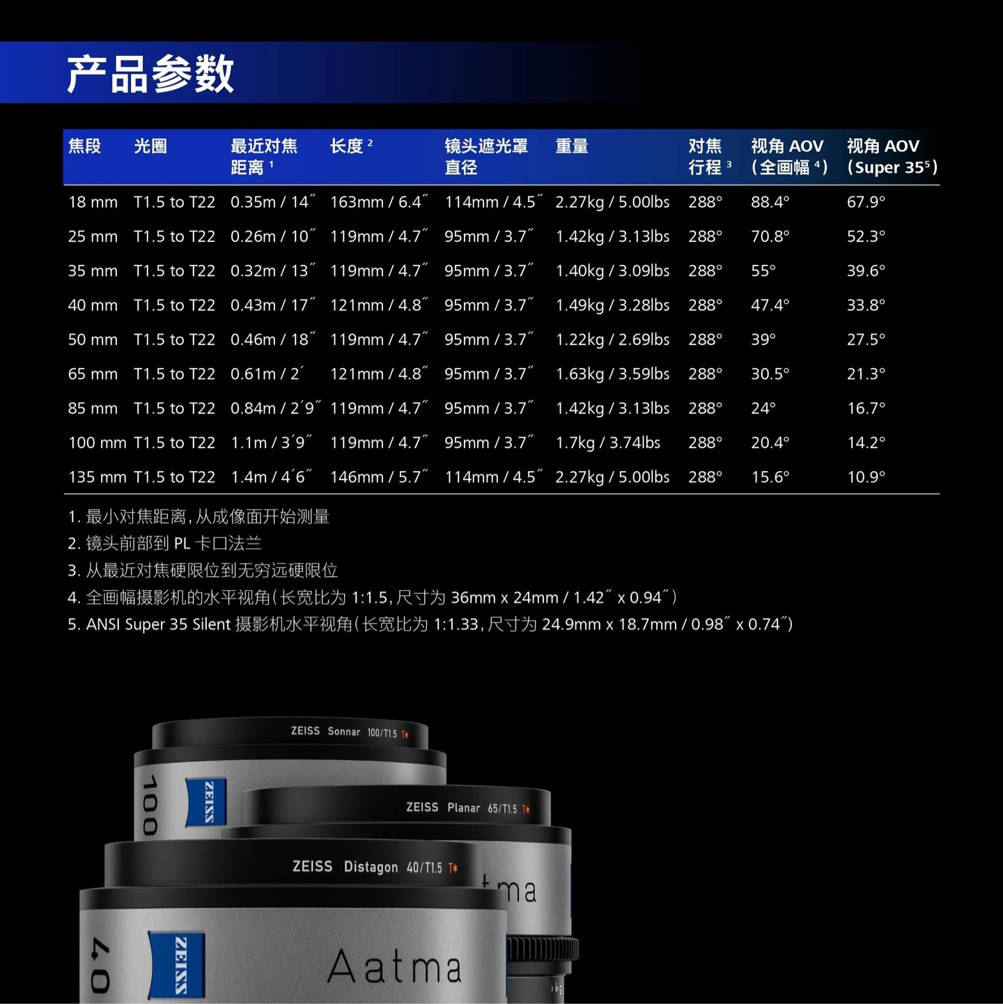 据介绍,Aatma 系列镜头专为电影工业设计,拥有 18mm、25mm、35mm、40mm、50mm、65mm、85mm、100mm 和 135mm 九个焦段可选,全系产品最大光圈都是 T1.5,满足夜间、暗光场景的拍摄需求。