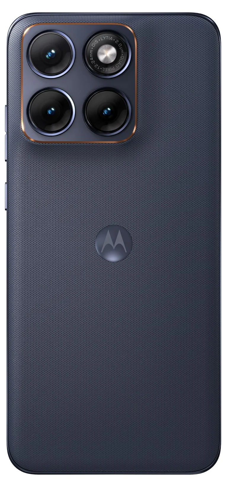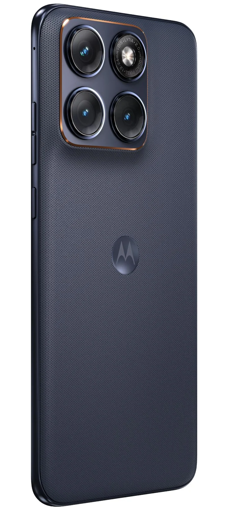 外观方面,摩托罗拉 Edge 70 Fusion 延续了品牌的设计语言,摄像头模组位于机身左上角,且材质与后盖主体不同。该机正面配备了一块曲面屏,顶部居中位置设有摄像头开孔,边框极窄,物理按键则集中分布在机身右侧。