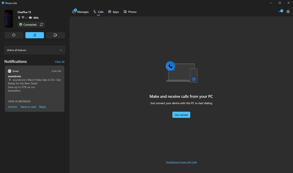 一旦授予权限,你即可开始使用。然而,要启用全部功能,你还需进行更多设置。例如,若你想从PC拨打电话,还需通过蓝牙将手机与电脑配对。Windows程序可协助完成此操作,但若失败(蓝牙连接常遇此问题),则需手动配对。