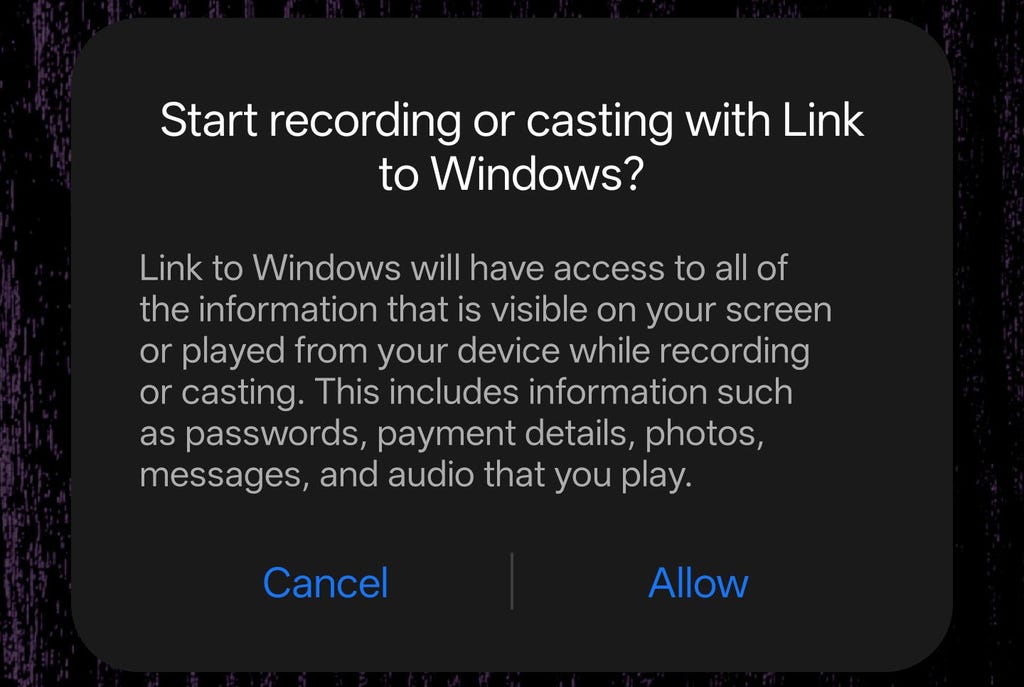 Phone Link弹出请求示例。Mark Knapp/CNET