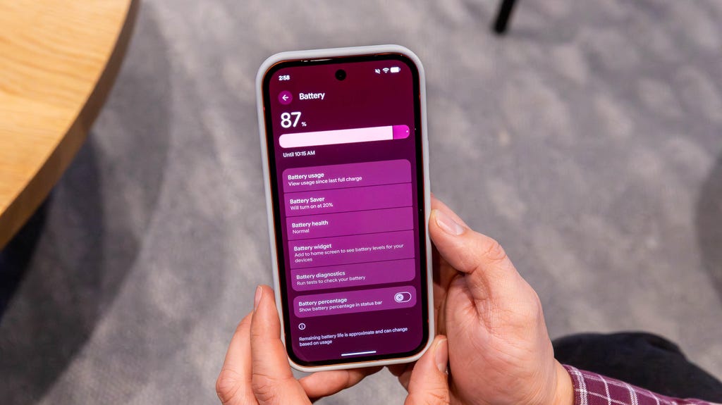 Pixel 10A搭载5100mAh大容量电池。Joseph Maldonado/CNET独家呈现