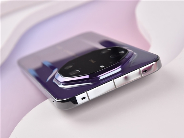 目光来到手机左侧,华为 Mate 80 RS 非凡大师在顶部还配备有一颗小孔,这里是华为定制的三振膜扬声器出声孔,其中主振膜位于顶部传统听筒位置,负责将通话声音清晰传达至人耳。