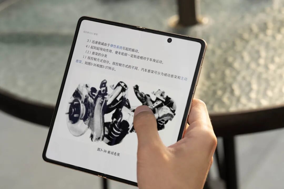 而阔折叠的优势便在于此,它将折叠屏的大屏体验从「看起来大」变成了「用起来顺」。这里的顺指的是屏幕展开后更像一本书,阅读起来像书本翻页,你不需要再刻意去适应它的比例,也不需要总想着「这屏幕怎么这么长」,你只会觉得:这就是大折叠屏该有的样子。