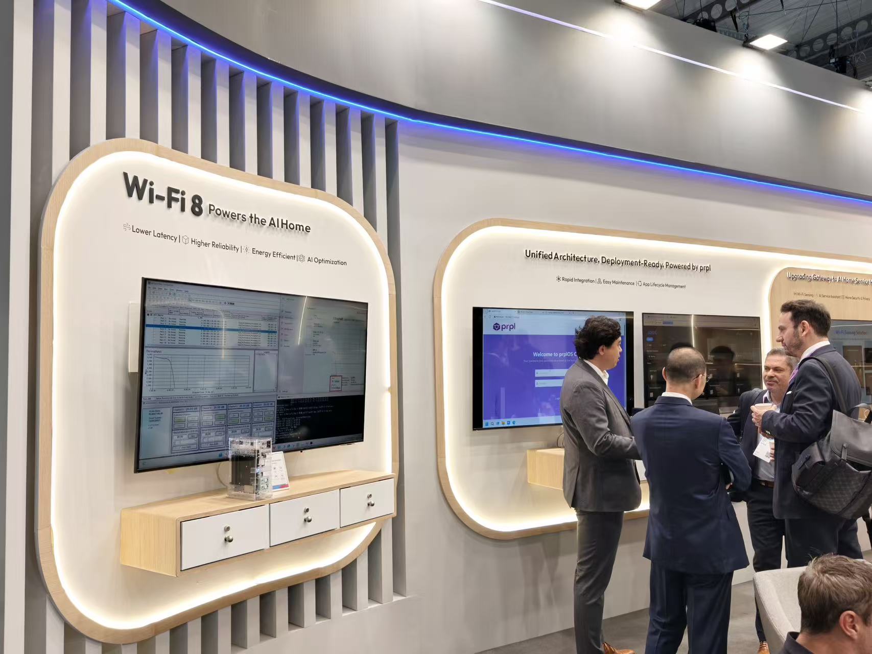 过去几年很多全屋方案的体验瓶颈,说到底不在某个终端的功能不够强大,而在整体的体验太多不可控因素,比如门锁、摄像头、传感器、音箱、家电、手机都在一张网里互相依赖,一旦网络抖一下、设备密度上来,用户感知到的就是不够灵敏。这也是为什么MWC 2026上,智能家居相关技术都在围绕Wi-Fi 8、AI网关、边缘算力展开。